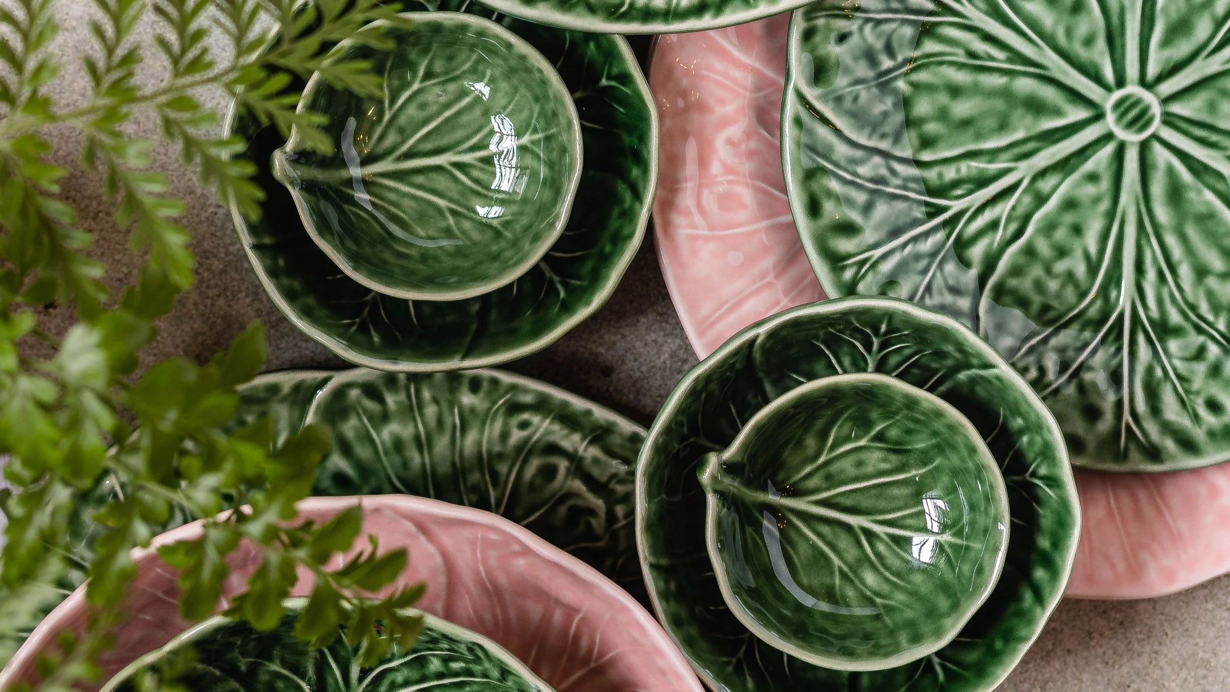 Design ideas for dinner parties using plants, lighting crockery, glassware.
